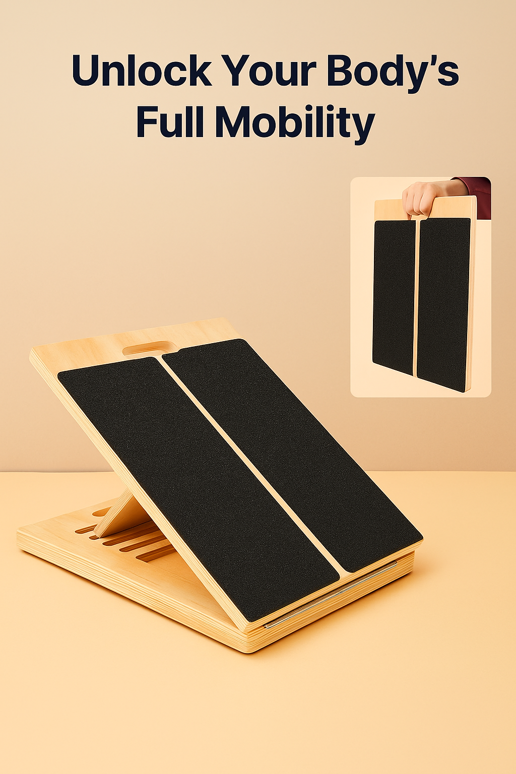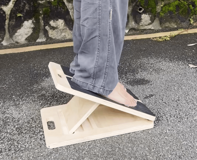 The slant board helps relieve tension and strengthen the calves, ankles, knees, and heels, promoting proper posture, balance, and flexibility.