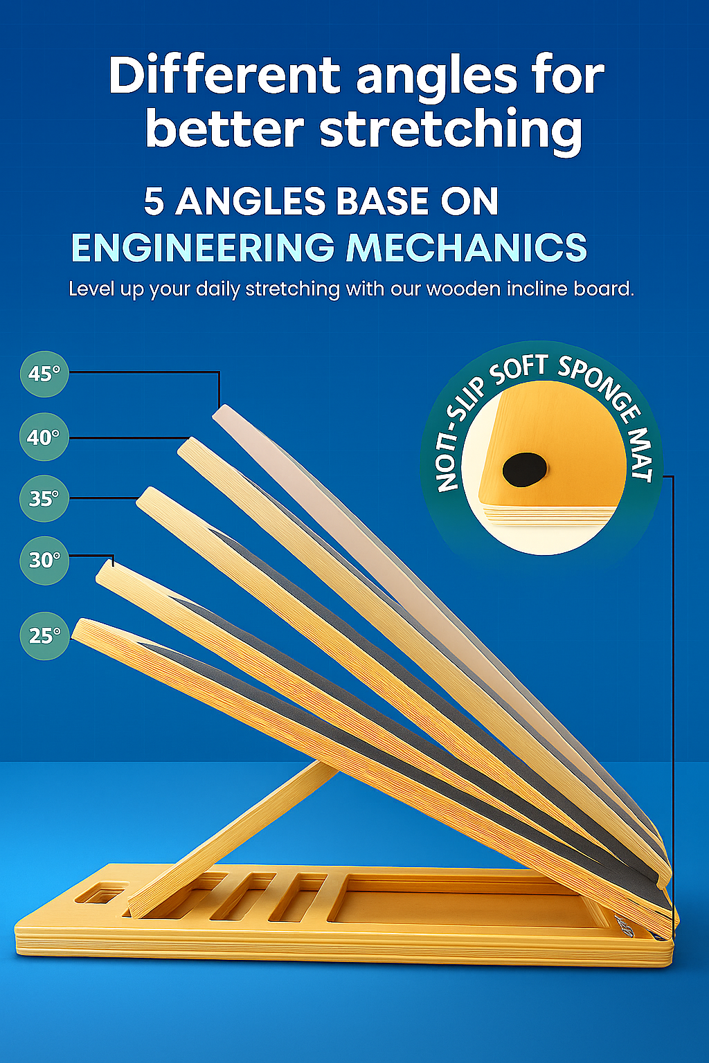 The Novass Slant Board features 4 incline levels, letting you customize your stretch to your comfort and progress. Crafted from premium wood, it supports up to 150KG, ensuring safety and stability with every session.